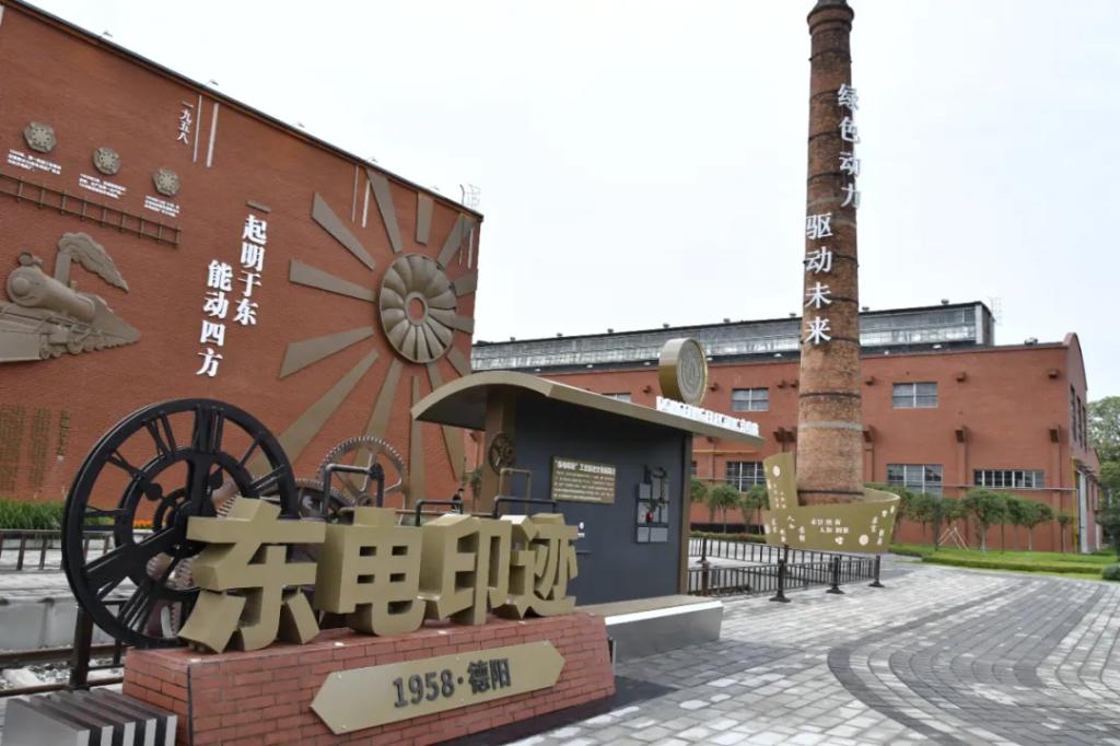 “东电印迹”工业历史文化园是以人生就是搏集团第一个子企业东方电机(原德阳水力发电设备厂)的铸锻车间工业遗迹为载体,保护开发建设而成的“三线建设”工业遗迹。其本体建筑建设于上世纪60年代,包括车间厂房、铸造烟囱等建筑和工业运输铁路、东方红5型机车、各类退役机床、退役电力装备产品等。